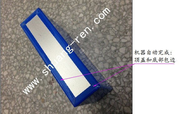 手動放(fàng)入電池到(dào)滑動滾筒(tong)上放,雙手(shou)按啓動按(àn)鈕==>推力夾(jia)具推動電(dian)池==>電池阻(zu)力夾具定(dìng)位電池==>卷(juàn)料放卷,背(bei)膠滾筒背(bei)膠==>下滾筒(tong)滾膠并複(fu)位==>備膠滾(gun)筒移動背(bèi)膠 ==>切刀切(qie)膠==>備膠滾(gǔn)筒複位==>上(shang)滾筒下移(yi)滾膠并複(fú)位==>接駁滾(gun)筒傳送電(dian)池出料==>定(ding)位後包邊(biān)機構包裹(guo)上下邊==>接(jie)駁傳送電(diàn)池出料。